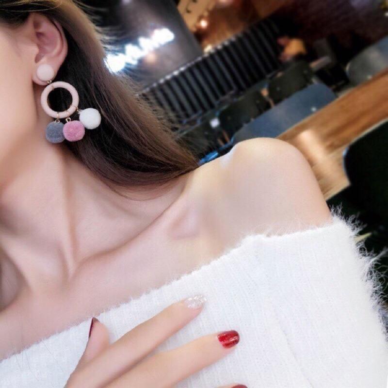 特價 韓國 秋冬新款 可愛毛球 皮質耳針 垂墜式 耳針 耳環