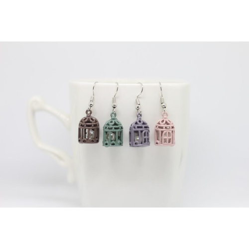 特價 手作 超可愛 馬卡龍色 鳥籠造型 珍珠 垂墜式 耳勾 耳環(可改夾式)