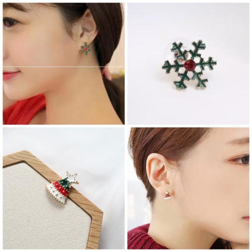 韓 可愛 聖誕節 不對稱 聖誕樹 雪花 造型 耳針 耳環(可改耳夾)