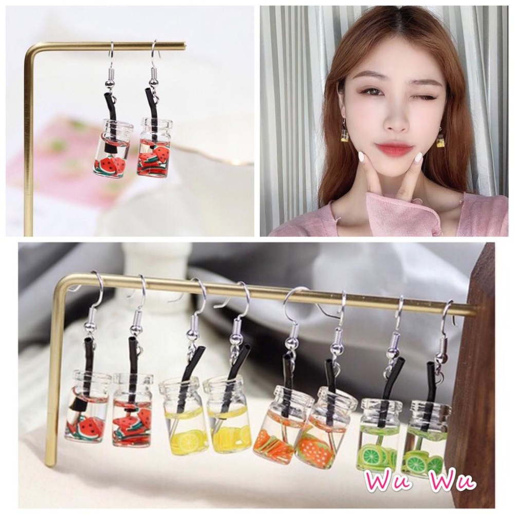 手作 搞怪 西瓜 草莓 奇異果 檸檬 水果 飲料 造型 耳勾 耳環(可改耳夾)