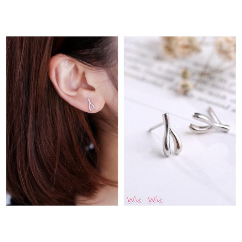 韓 氣質 輕巧 許願骨 骨頭 造型 S925抗敏感 耳針 耳環(可改耳夾)
