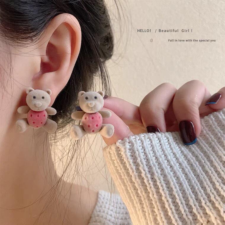 韓 可愛 草莓 小熊 造型 s925抗敏感 耳針 耳針 耳環(可改耳夾)