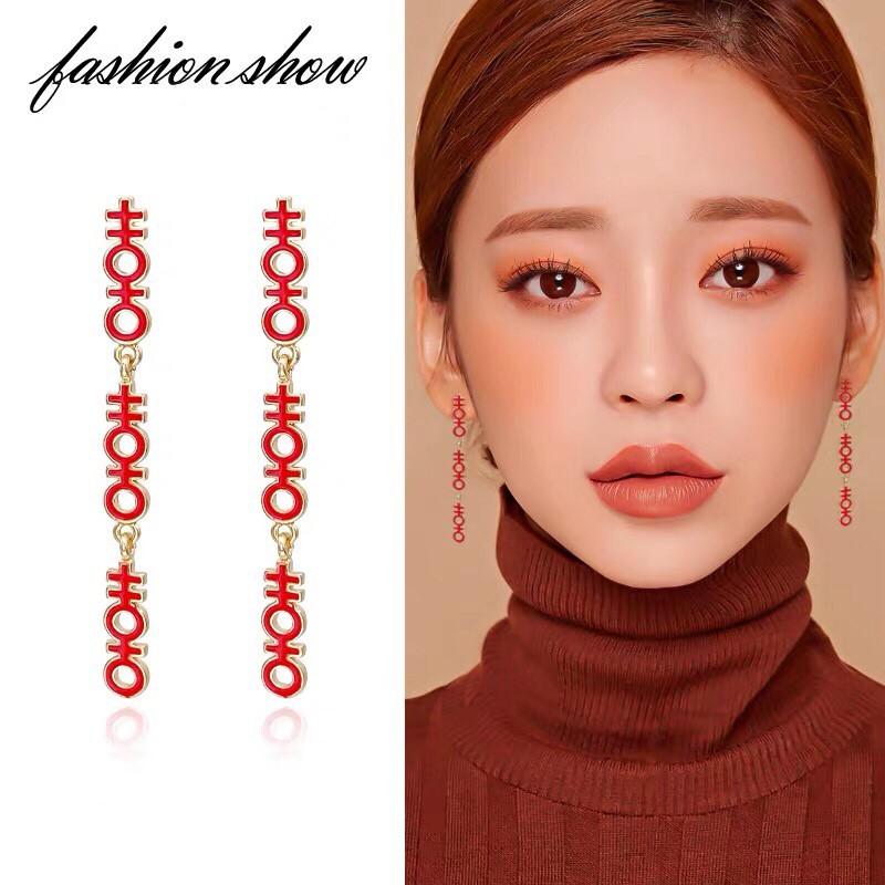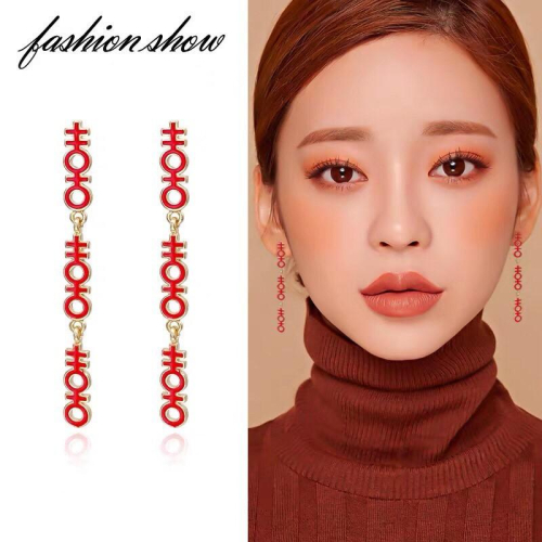 復古 中國風 輕巧 紅色 囍 中文 國字 s925抗敏感 垂墜式 耳針 耳環(可改耳夾)