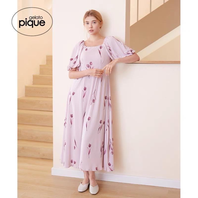 正品全新 Gelato pique 柔美鬱金香印花帶罩杯舒柔睡衣 睡裙 家居服 粉