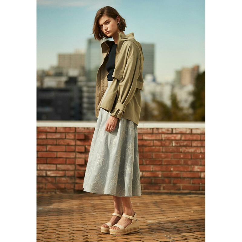 正品全新 Jill STUART 主線 3萬日幣 精品典雅落肩百褶小群擺設計風衣外套 卡其綠S