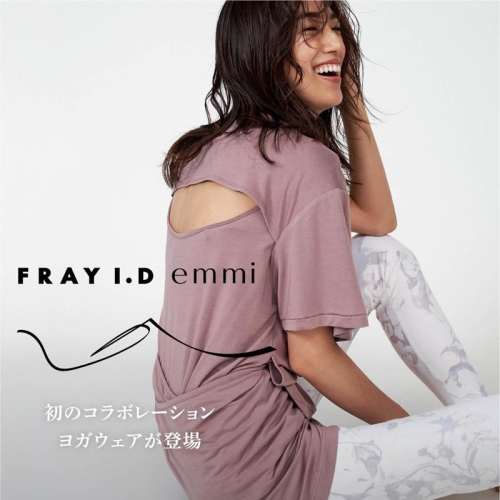 全新吊牌在 Emmi Fray I.D 聯名 休閒舒適結構感後鏤空瑜珈服 T恤 摩卡咖 粉紫