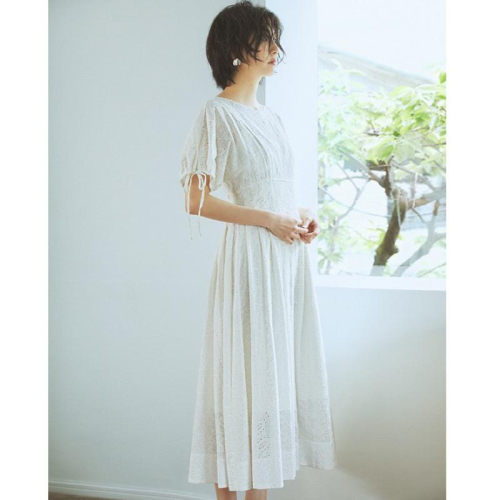 Snidel 精美雕花蕾絲褶飾洋裝 禮服 婚禮 純白1號 SWFO202033