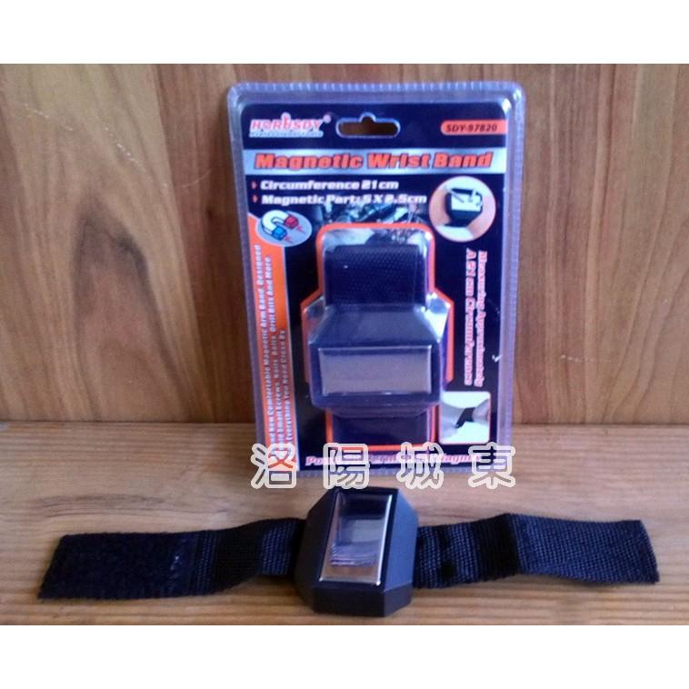 手腕式強磁 工作 吸磁 磁吸 工作 螺絲集中使用的好工具 使用高韌度帆布環帶以及大面積強力磁鐵,讓您可以在工作時收納鐵製物品 尺寸:腕帶長21cm,大磁鐵5×2.5cm