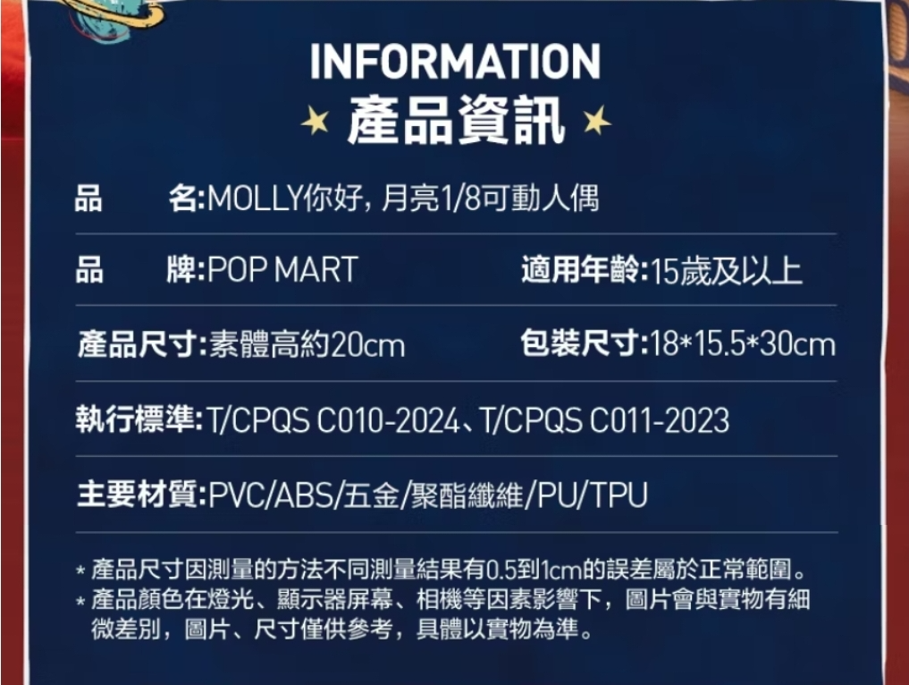 (預購)POP MART MOLLY 你好月亮1/8可動人偶