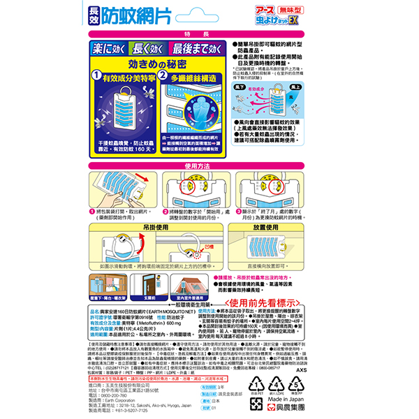• 吊掛於屋簷、陽台、晾衣架、玄關等容易有蚊子的場所。