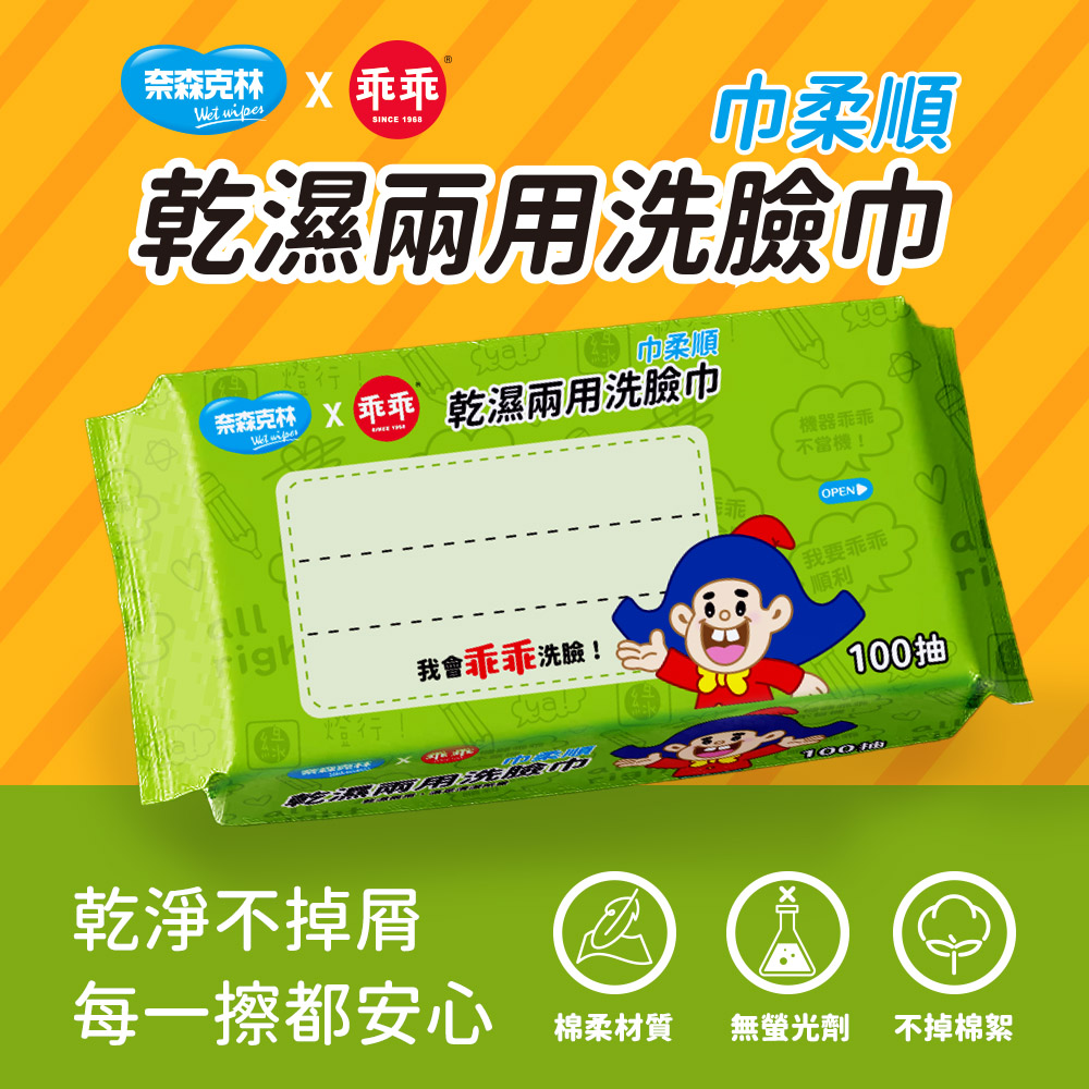 奈森克林x乖乖 乾濕兩用洗臉巾100抽