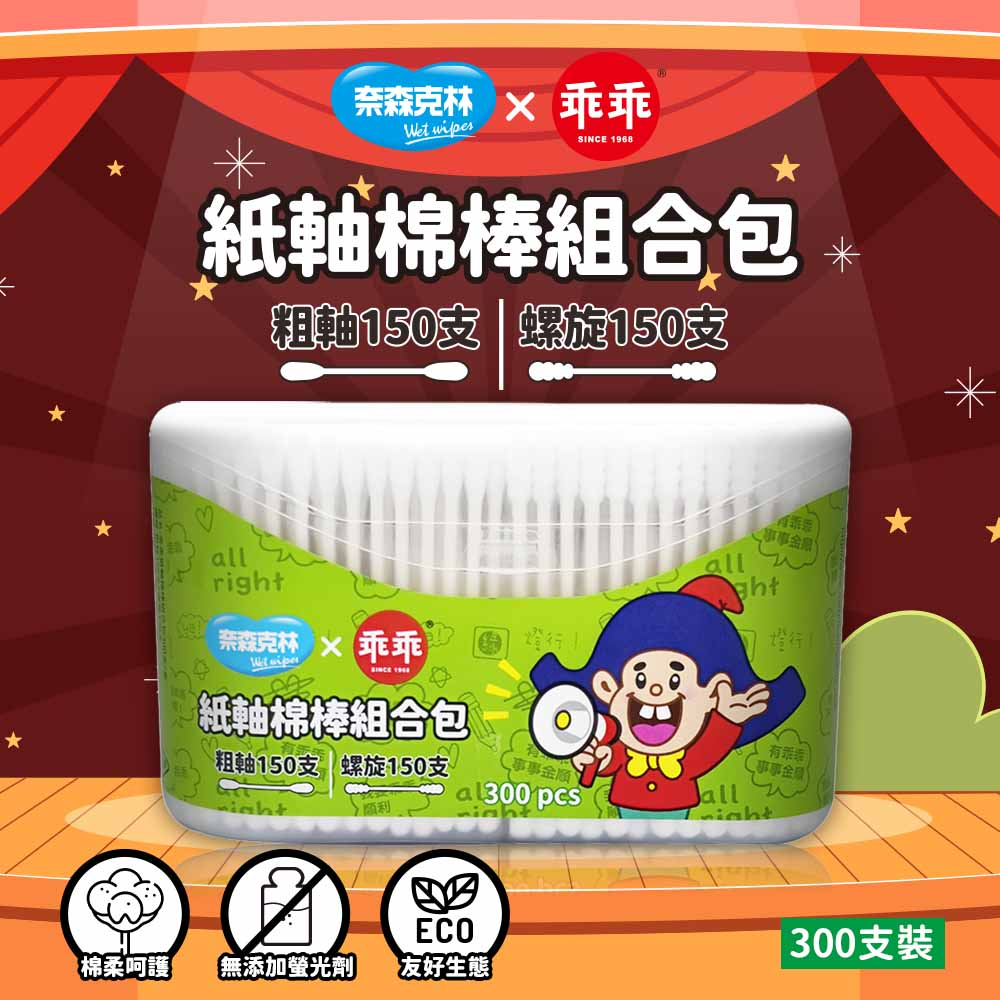 奈森克林x乖乖紙軸棉花棒300支雙寶盒(圓+螺旋雙效組)