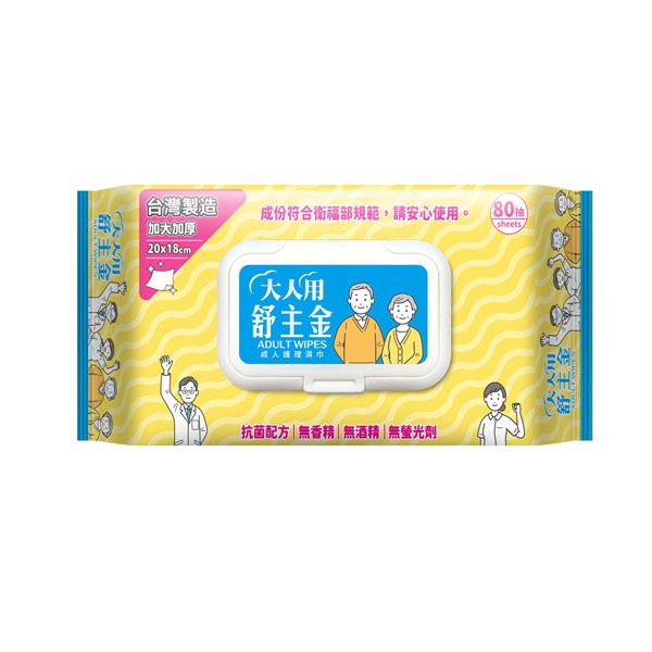 大人用舒主金 濕巾80抽加厚加大加蓋(日常清潔.成人護理適用)