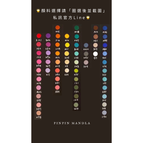 下單時填寫數量、截圖圈色卡回傳line告知所需顏色及完成訂單💗