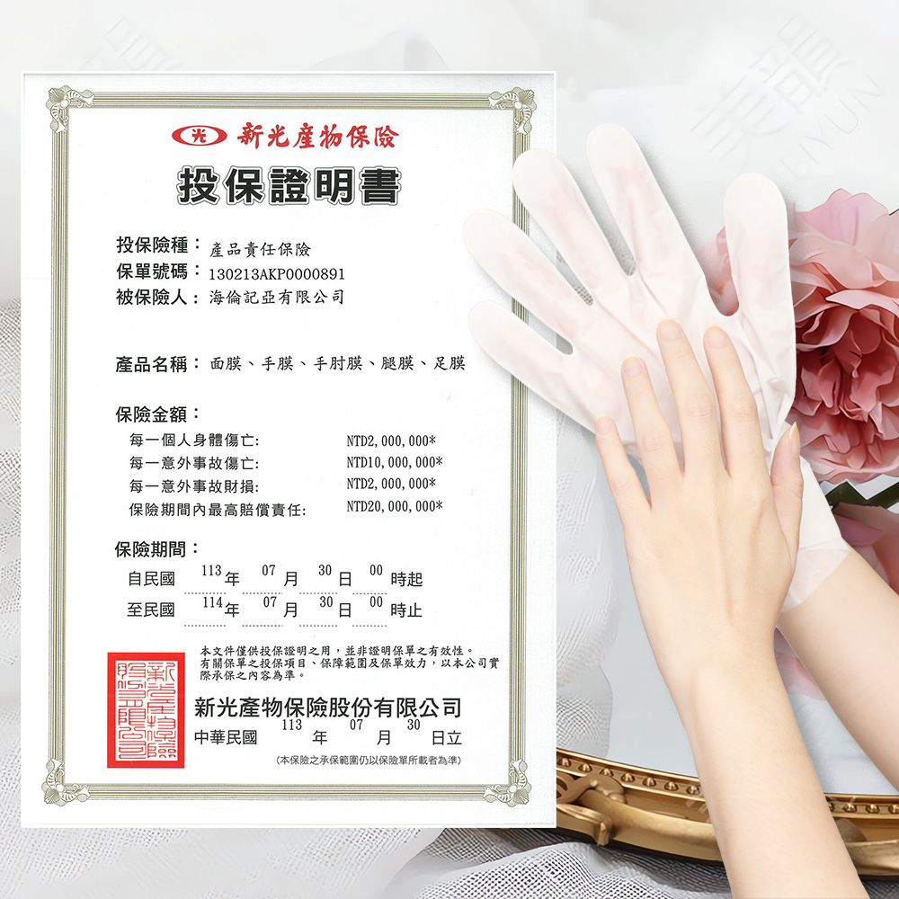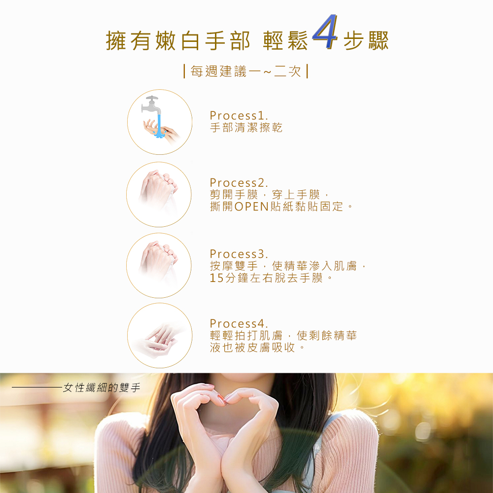 輕壓手膜使精華液均勻分布手部,20分鐘左右取下手膜