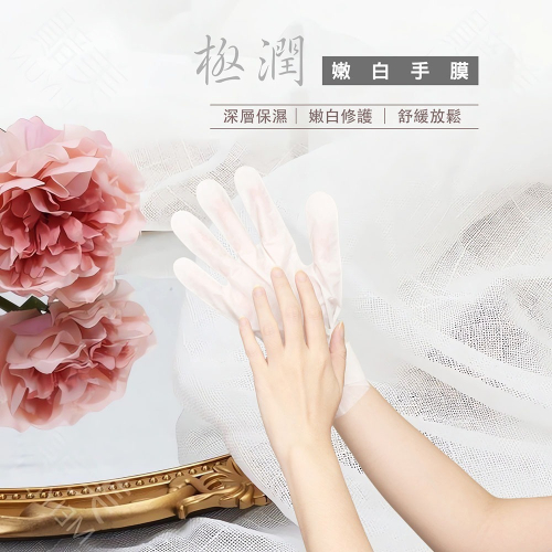 輕壓手膜使精華液均勻分布手部,20分鐘左右取下手膜