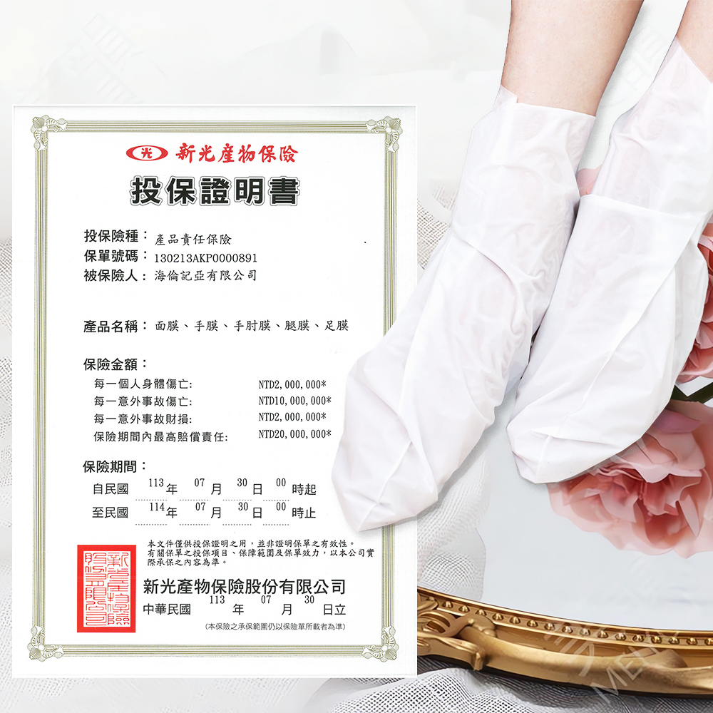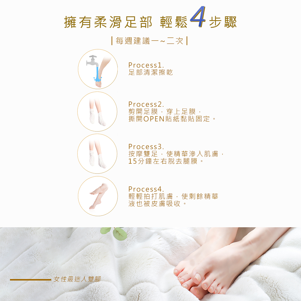 輕壓足膜使精華液均勻分布足部,20分鐘左右取下足膜