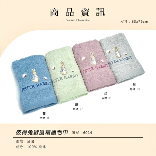 🔸商品名稱:彼得兔歐風精繡毛巾