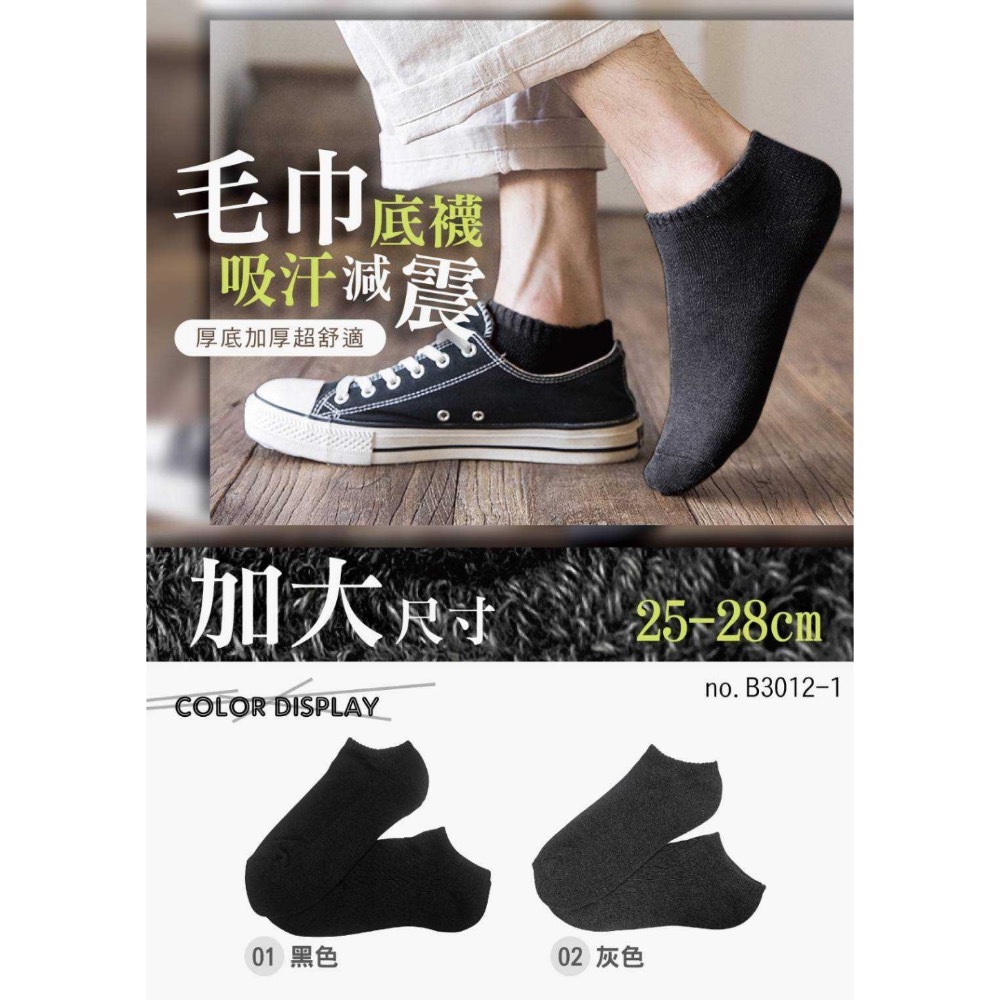 台灣製"加大"尺寸毛巾船襪 (單色一組4雙入) 型號 B3012-1
