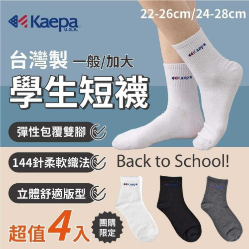 台灣製中筒短襪4雙同色/1組(一般/加大)
