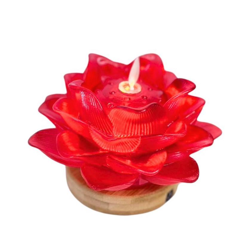 【新韻傳音】大蓮華蓮花燈搭配圓木底盤-祈願心燈 蓮花蠟燭燈 拜拜供神 祈福 電子蠟燭 神明桌 D353B