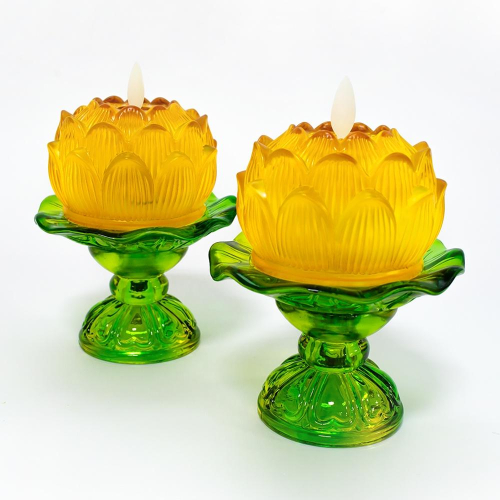 【新韻傳音】琉璃心燈-蓮花飄飄燭二入套裝(精巧蓮葉底座) 精緻琉璃造型電子蠟燭 共有七色 A010
