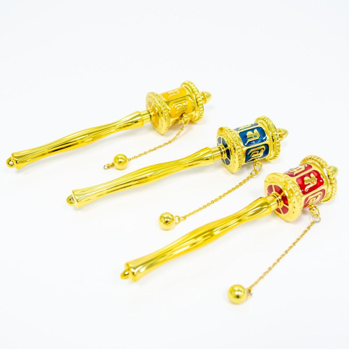【新韻傳音】經典三色 12公分 手搖轉經輪 紅、黃、藍 手轉經輪 三色套組 轉經筒 法器 A003-W3-1