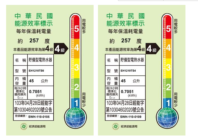 型號:EH1210TS6/S4 容量:12加侖(45公升) 形狀:圓型 設置方式:直掛式 桶身尺寸(含腳架):Φ405 x 742 mm(直徑 x 高) 外殼材質:不鏽鋼 電源:單相 / 220V 功率/電流:4kW /18A 功率/電流:6kW / 27A 能源效率:第4級 設定溫度:35~70°C(出廠設定65°C) 高溫斷路器:90±3°C 適用水壓:約1~3kg 漏電斷路器:2P30A 出水口:下方 進/出水管徑:1/2" 使用人數:1~2人 https://s-cf-tw.shopeesz.com/file/tw-11134208-7qul7-lhn96di47xjkb0 https://s-cf-tw.shopeesz.com/file/tw-11134208-7qul8-lhn96diduw26c3 https://s-cf-tw.shopeesz.com/file/tw-11134208-7qul1-lhn96didwammeb https://s-cf-tw.shopeesz.com/file/tw-11134208-7qukz-lhn96didxp72af