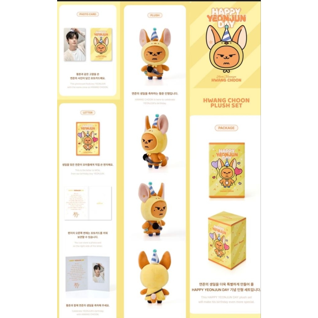 西瓜松喵娃娃*1+然竣生日禮盒(大黃春娃娃)*1+SUMMER TOGETHER線上滿額特典小卡---松喵款*1+哼阿寧款*1。