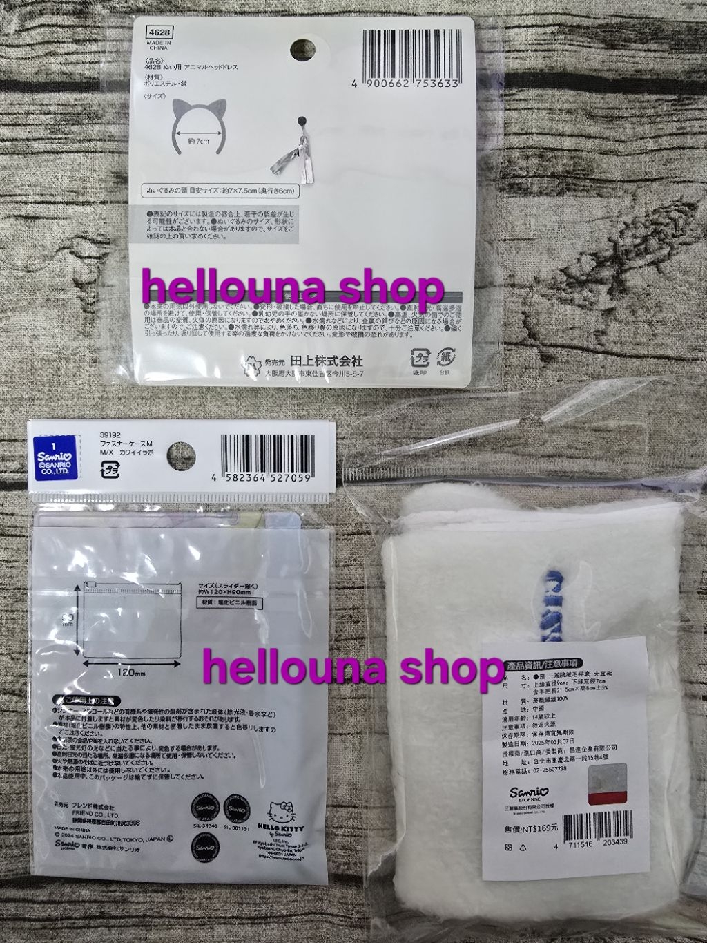 娃用髮箍兔耳朵款*1+三麗鷗實驗室風格收納袋*1。