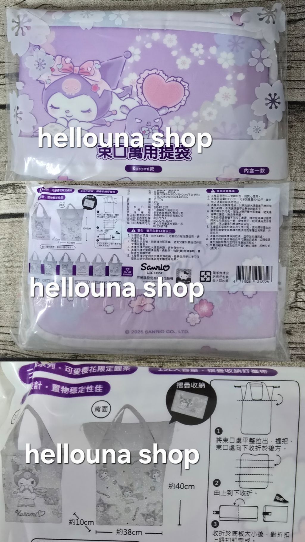 酷洛米櫻花萬用束口提袋*1+大耳狗娃包*1+天使絨毛卡套(附鑰匙圈)*1+