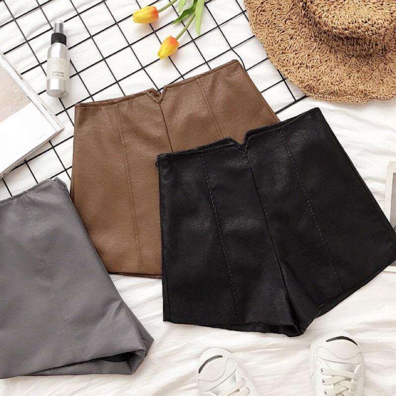 現貨❤️百搭皮褲 短褲 高腰短褲 高腰皮褲 可搭膝上靴 過膝靴 皮褲 皮短褲 秋冬短褲 短褲 高腰褲