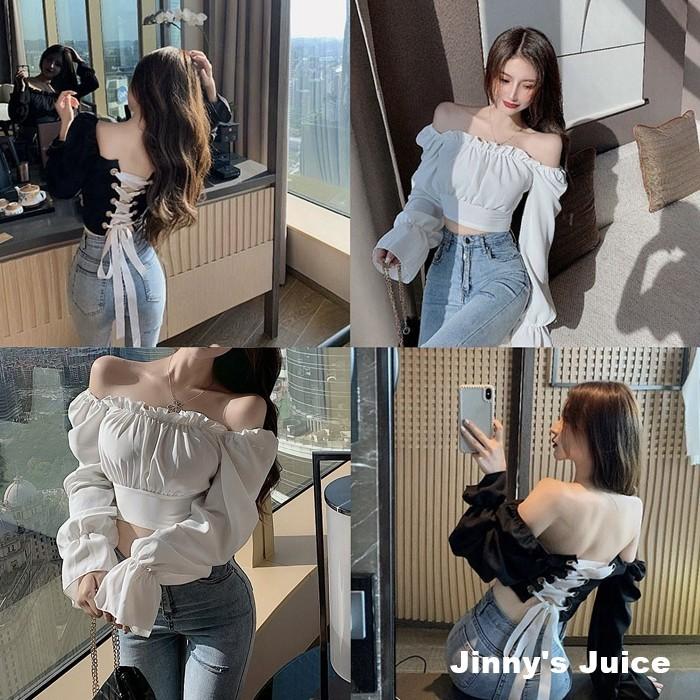 現貨 法式一字領綁帶上衣 一字領上衣 綁帶上衣 美背上衣 木耳邊上衣 緞帶上衣 短版上衣 性感上衣 露肩上衣 露背上衣