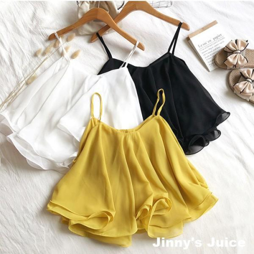 現貨 雪紡可愛荷葉細肩帶上衣 傘狀上衣 荷葉上衣 細肩帶上衣 短版上衣 氣質上衣 可愛上衣 荷葉邊上衣 雪紡上衣