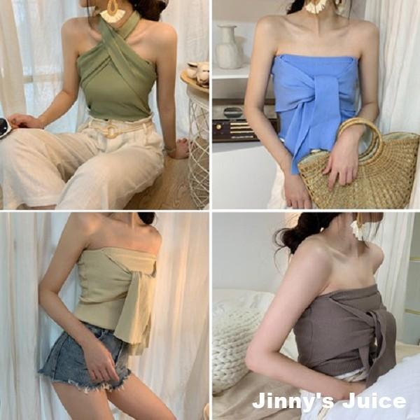 現貨 多種穿法 針織平口上衣 繞脖綁帶上衣 削肩背心 針織背心 平口背心 綁結上衣 綁結背心 外搭背心 彈力背心