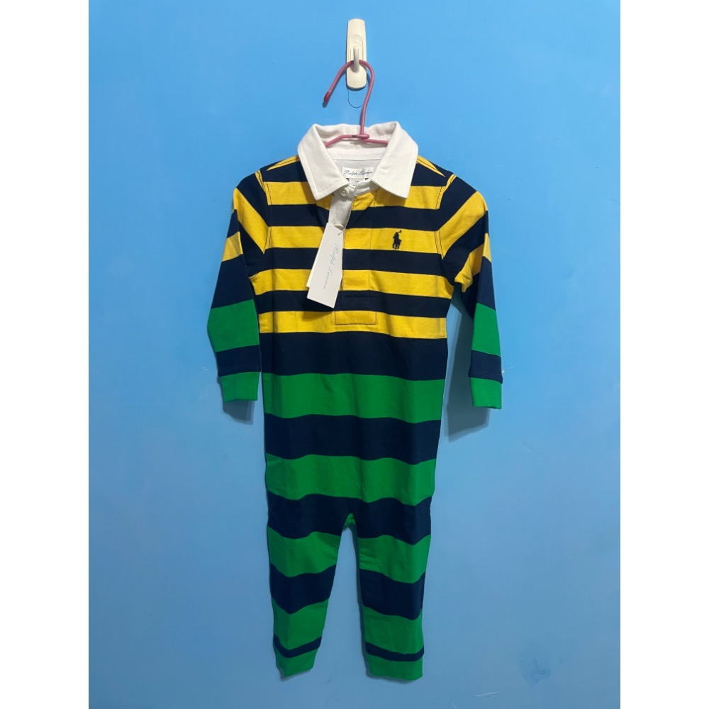 全新 12m Ralph Lauren polo 彩色小馬綠黃藍條紋長袖連身衣