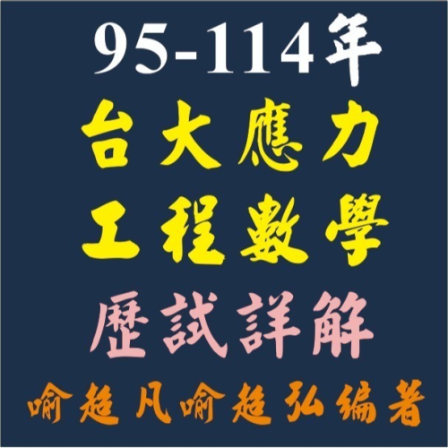** 95-114共20年份的 台大應用力學所工程數學歷試詳解 ,是喻超凡老師將歷年試題彙整 ,內容詳盡完整