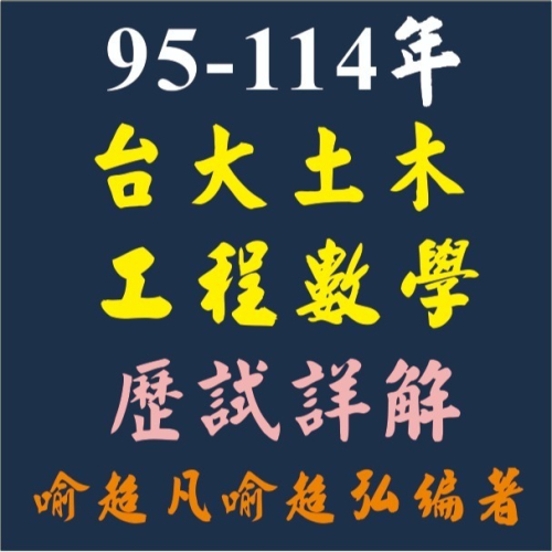 ** 95-114年共20年份的 台大土木工程數學歷試詳解,是喻超凡老師將歷年試題彙整 ,內容詳盡完整