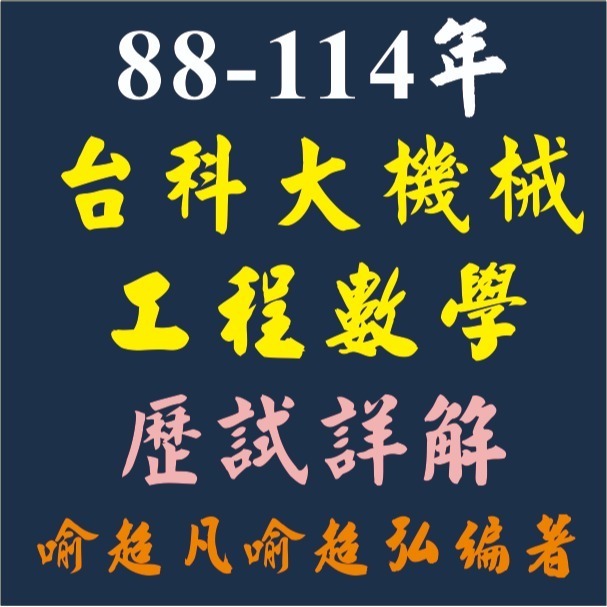 **  88-114年共28年份的 台科大機械所工程數學歷試詳解 ,是喻超凡老師將歷年試題彙整 ,內容詳盡完整