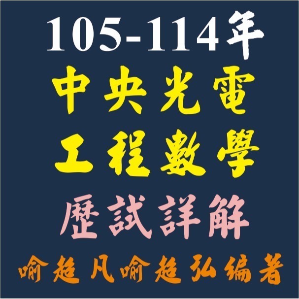 ** 105-114年共10年份的 中央大學光電所 工程數學歷試詳解 ,是喻超凡老師將歷年試題彙整 ,內容詳盡完整