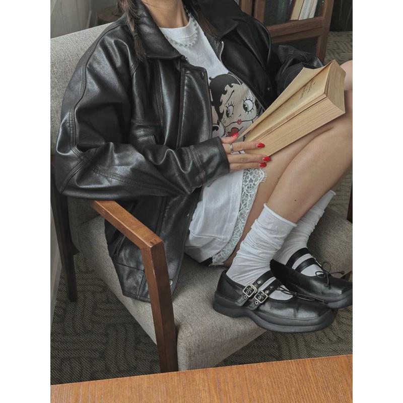 《HSS 韓國代購》正韓 🇰🇷 東大門 後車標復古風滾邊皮革外套