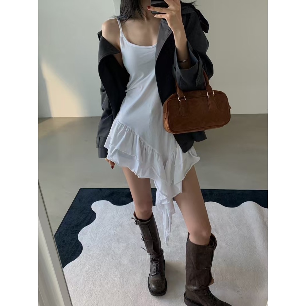 《HSS韓國代購》正韓 🇰🇷 東大門 VERANDA 細肩下擺不規則荷葉連身裙長洋裝ㄧㄚ