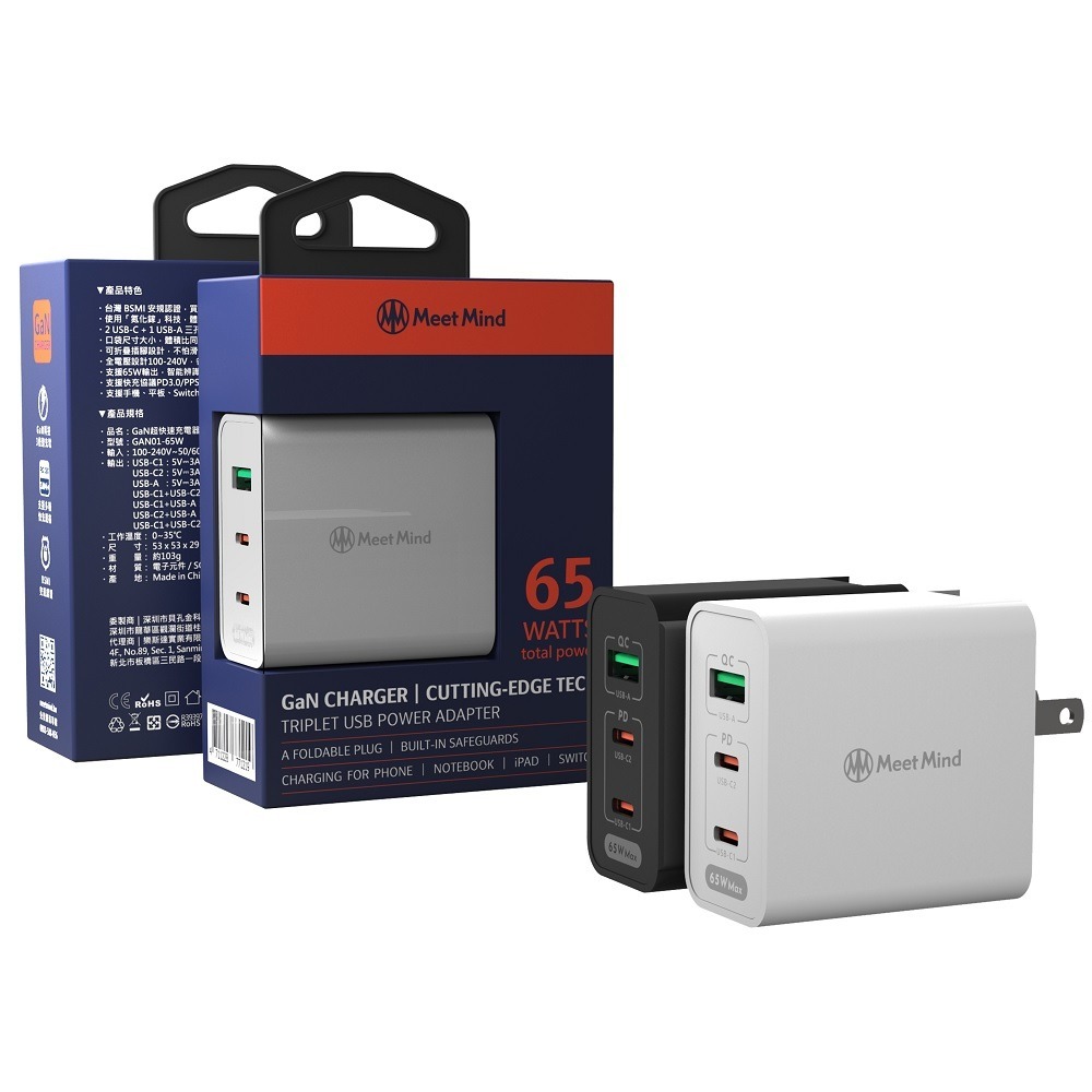 採用新氮化鎵GaN充電技術,體積小,充電快,發熱量低