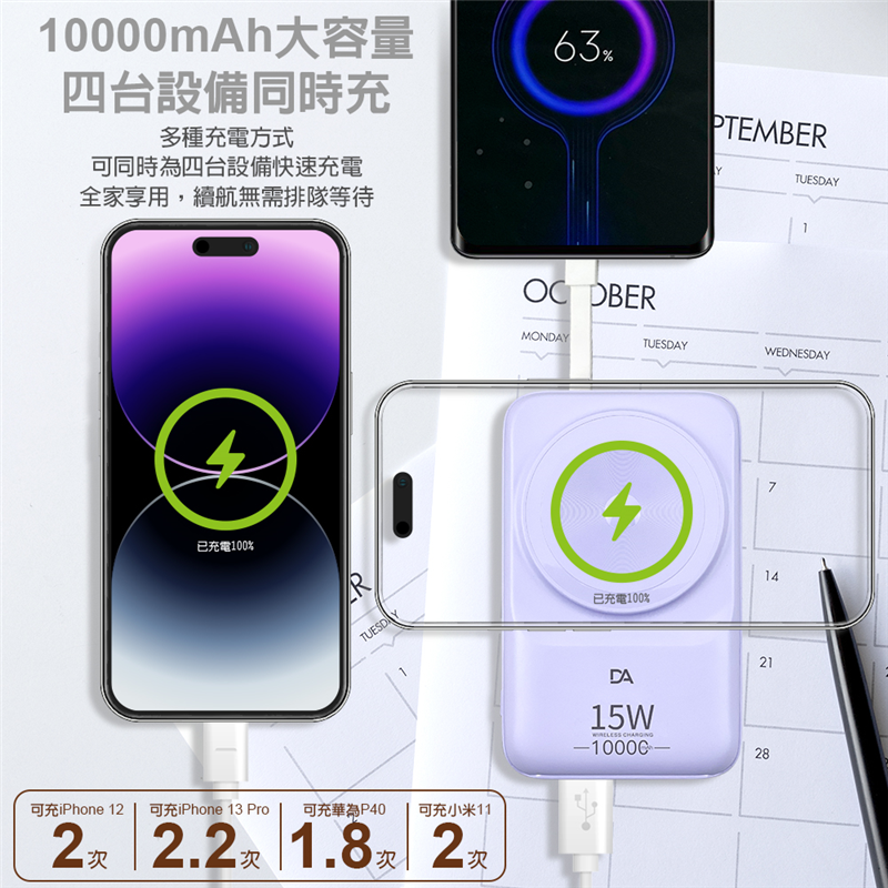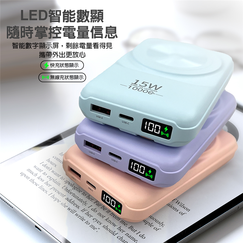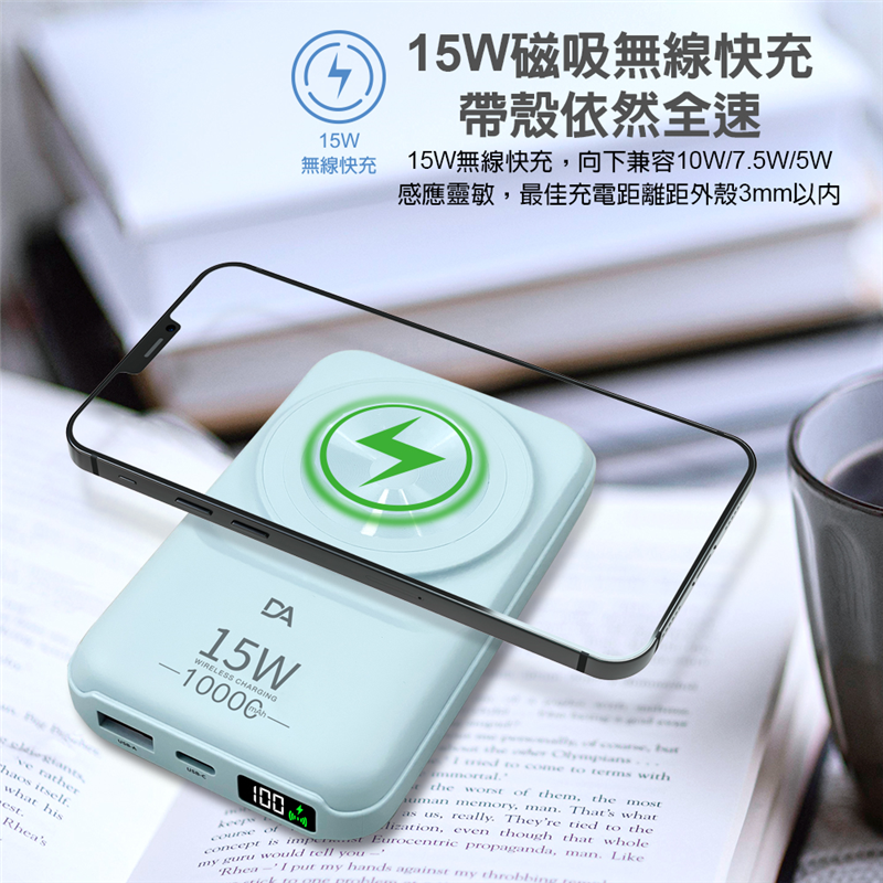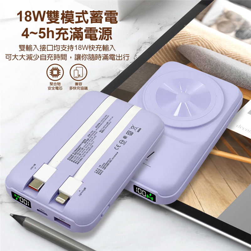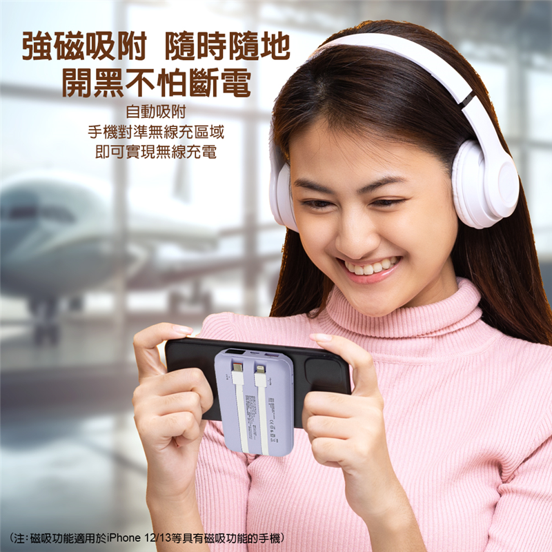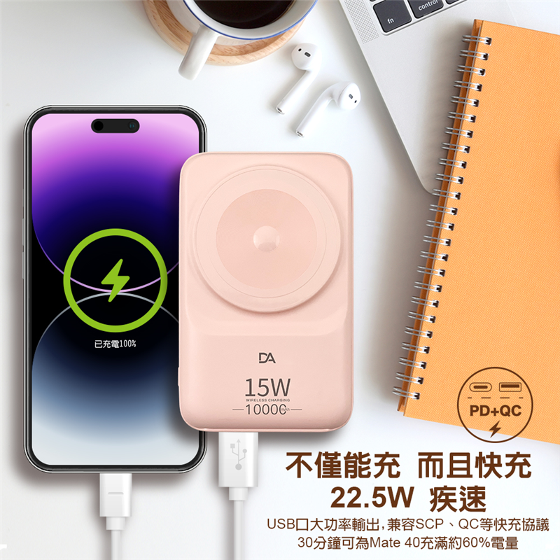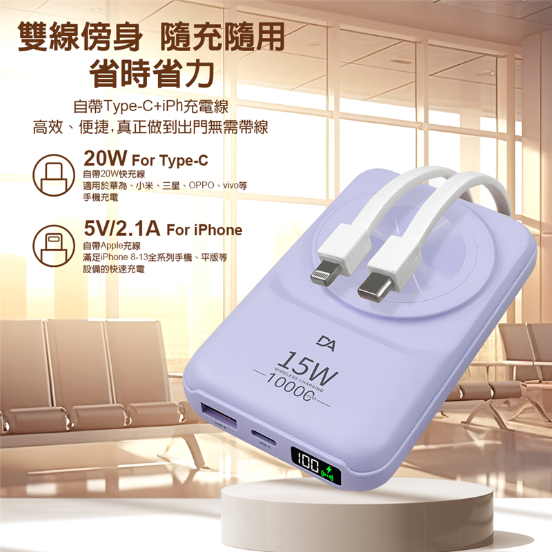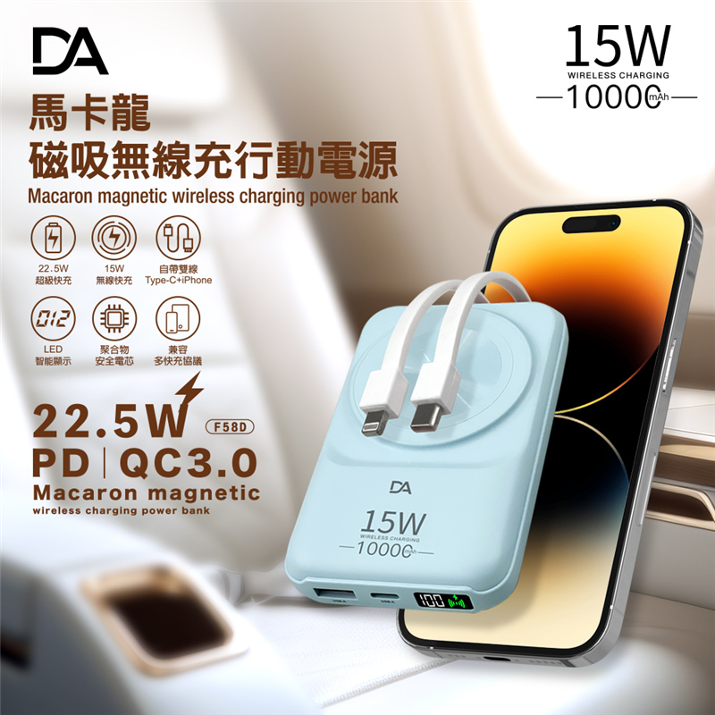 DA F58D 馬卡龍磁吸無線充自帶線行動電源(Type C + Lightning)