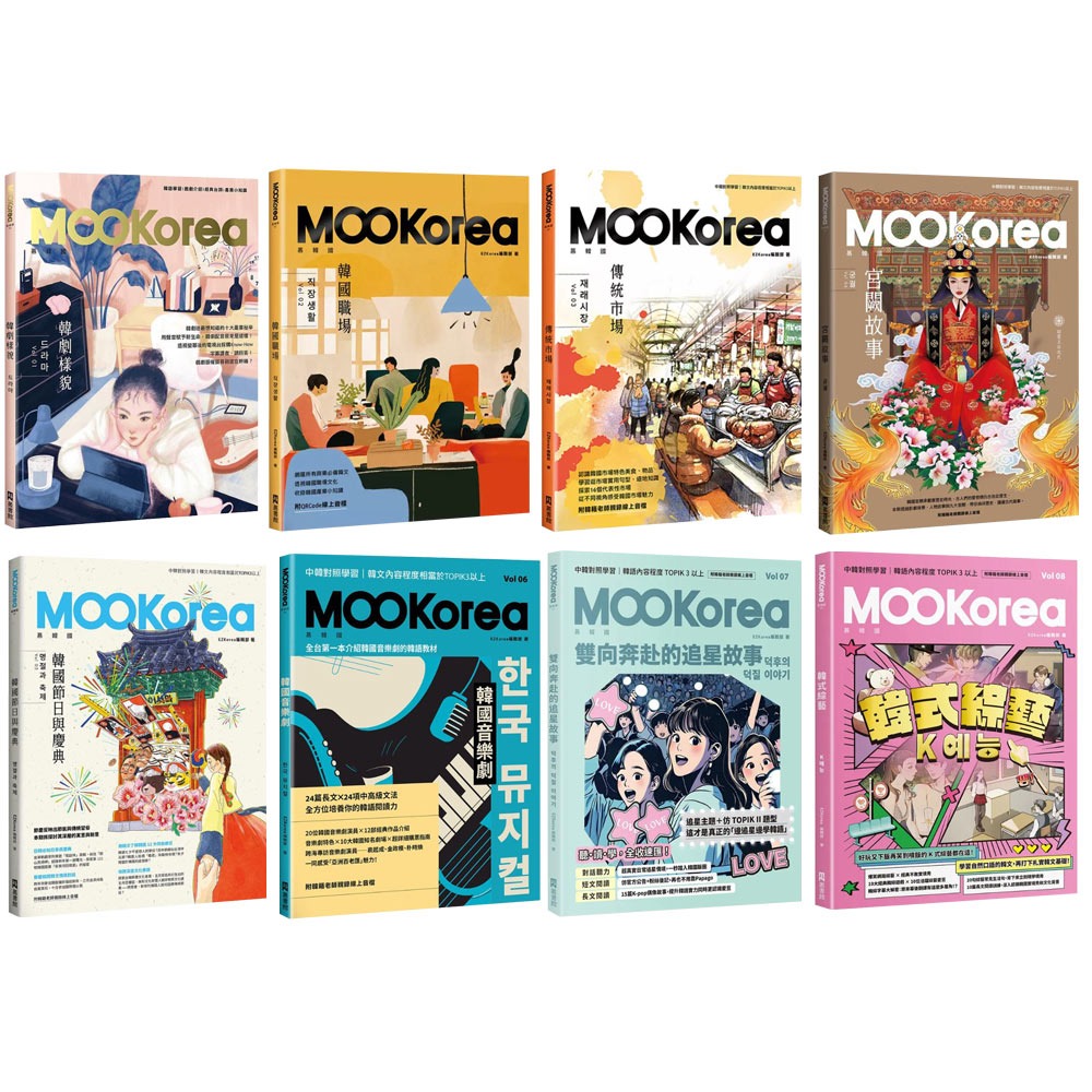商品名:MOOKorea慕韓國【韓劇樣貌 + 韓國職場 + 傳統市場 + 宮闕故事 + 韓國節日與慶典 + 韓國音樂劇 + 雙向奔赴的追星故事 + 韓式綜藝】