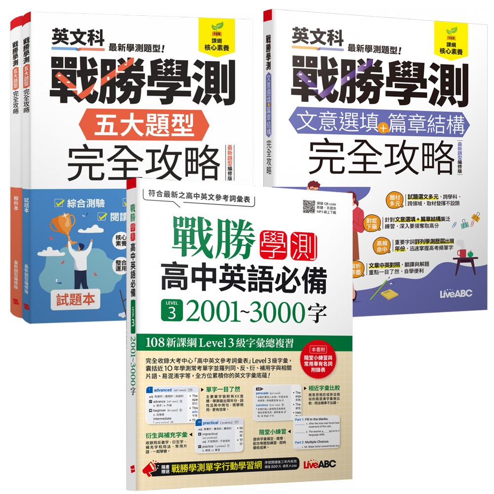商品名:戰勝學測完全攻略【文意選填+篇章結構】+【五大題型】(最新題型編修版)+《戰勝學測 高中英語進階 LEVEL 3》