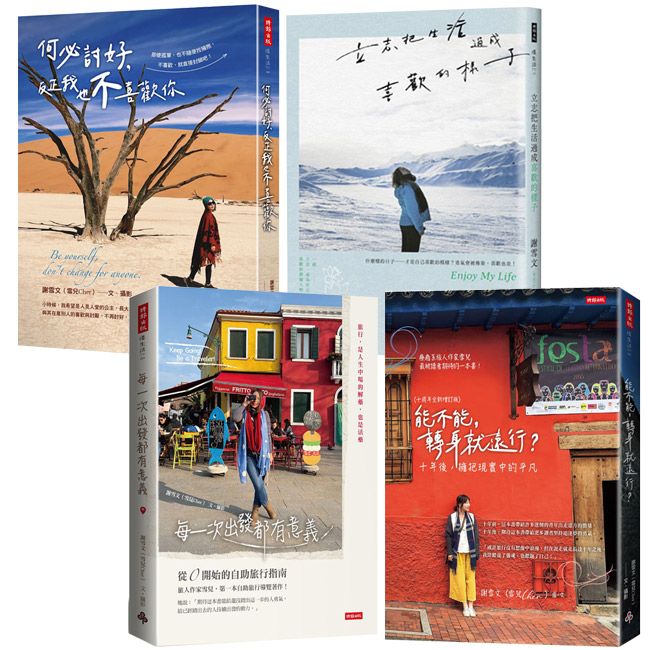 商品名:謝雪文(雪兒Cher):《何必討好,反正我也不喜歡你》+《每一次出發都有意義》+《立志把生活過成喜歡的樣子》+《能不能,轉身就遠行?》(十周年全新增訂版)