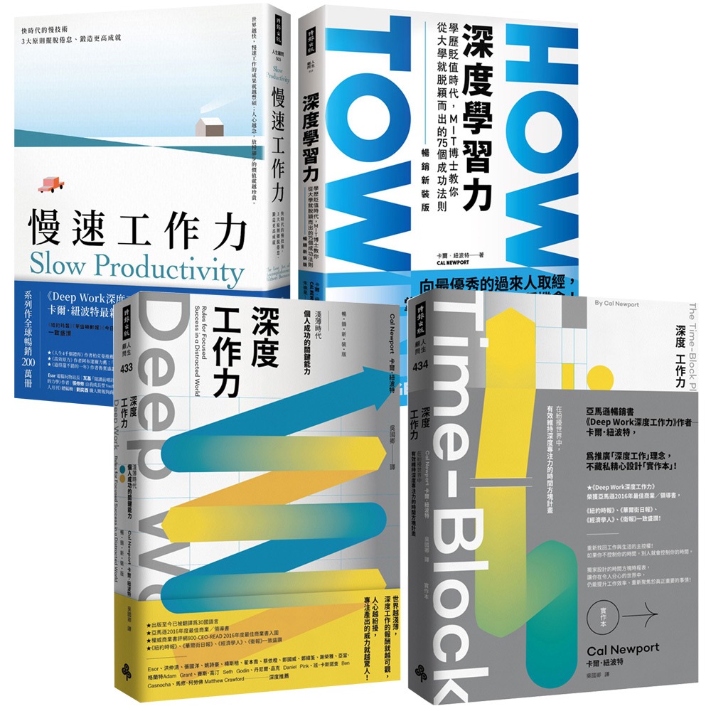 商品名:卡爾.紐波特:《慢速工作力》+《深度學習力》+《Deep Work深度工作力》+【實作本】