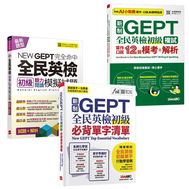 商品名:新制GEPT 全民英檢初級【寫作口說12回 + 聽力閱讀模擬試題 + 必背單字清單】