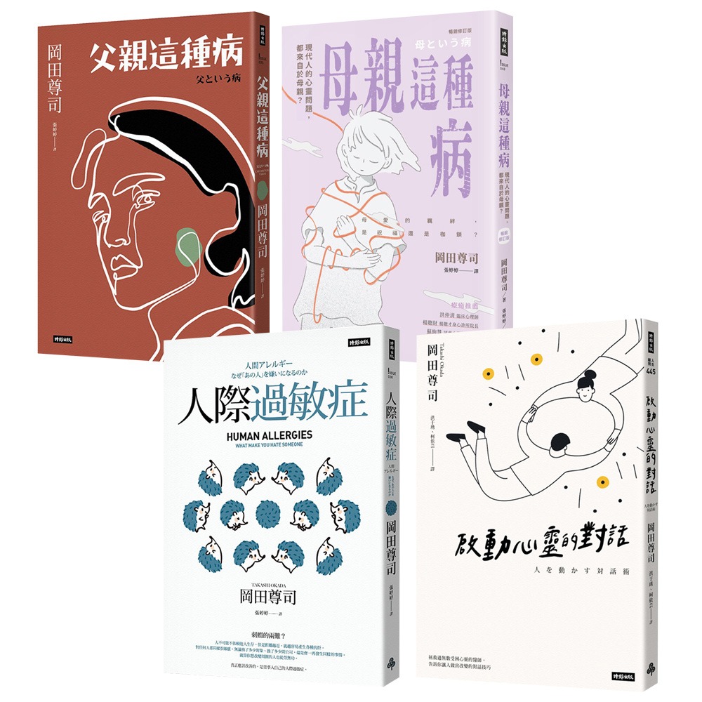 商品名:岡田尊司:《父親這種病》(長銷經典版)+《母親這種病》【暢銷修訂版】+《啟動心靈的對話》(暢銷經典版)+《人際過敏症》(長銷經典版)